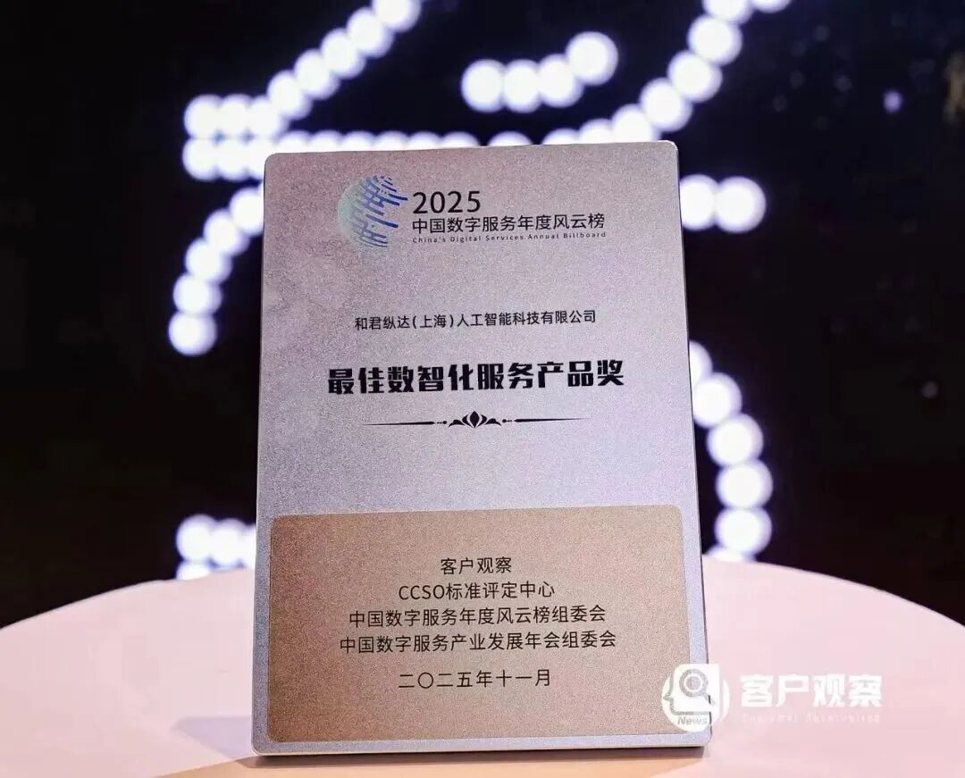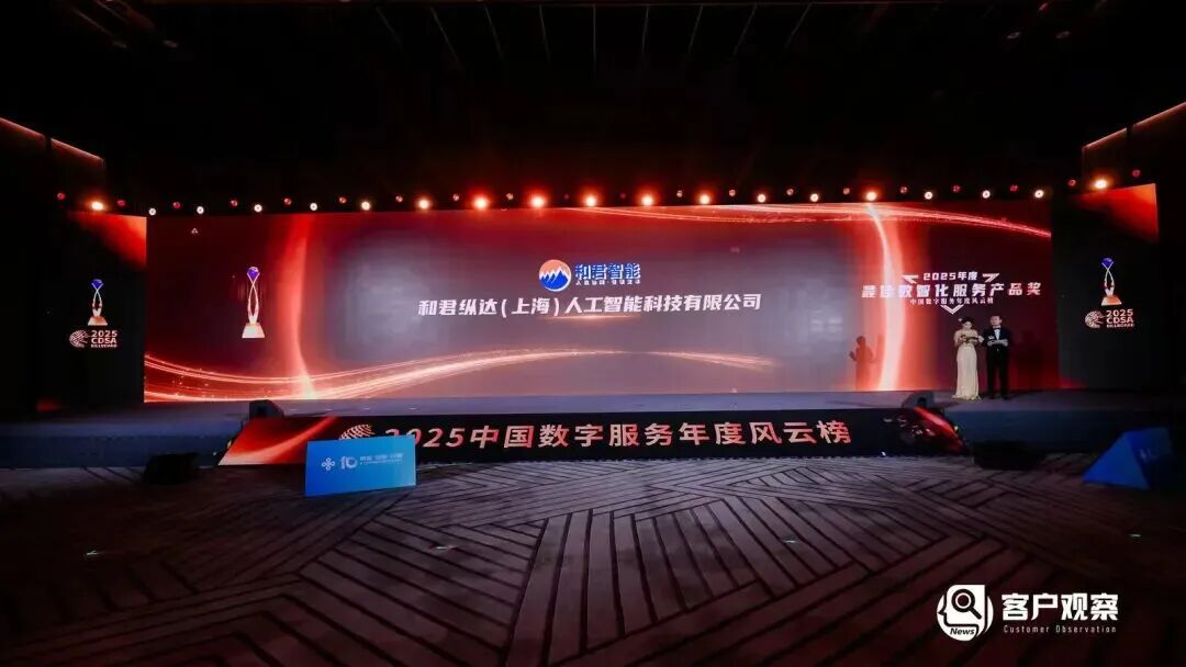 本届年会和君智能凭借卓越的技术创新能力与全场景数智化解决方案落地实践,荣获 “2025 年度最佳数智化服务产品” 奖项。